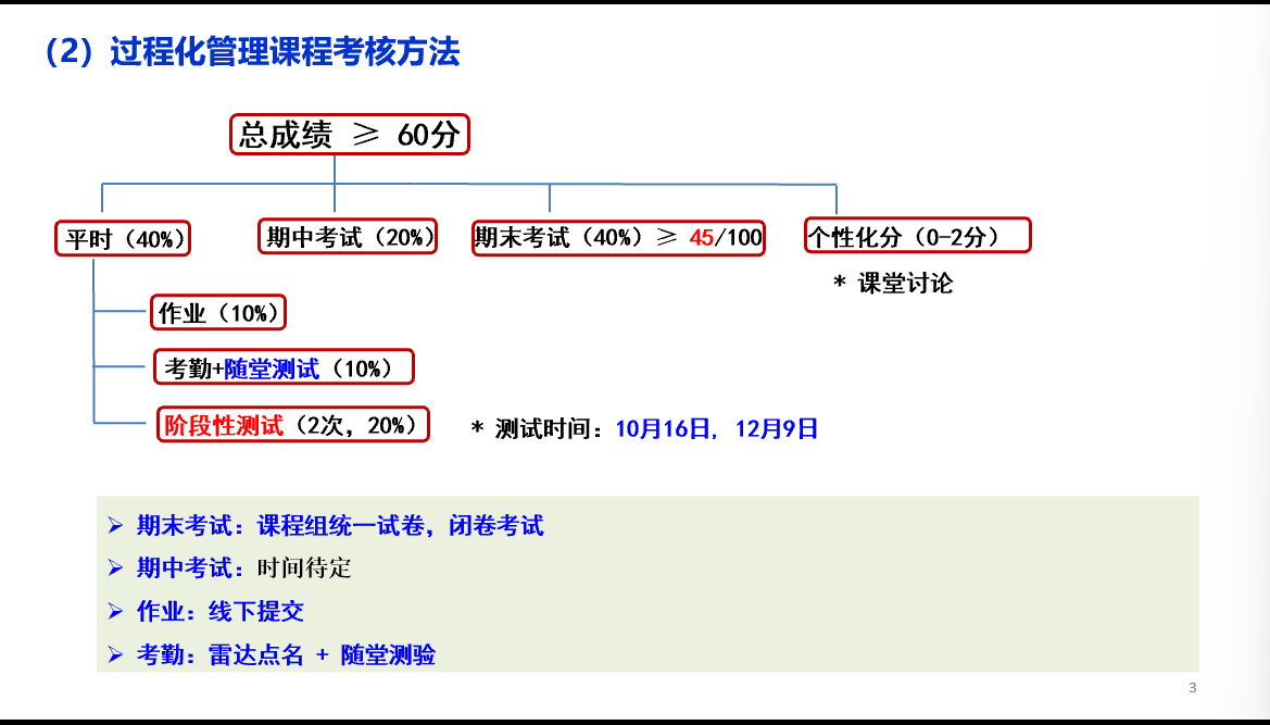 - 考试形式:闭卷,期中选择题×50道,期末选择+若干大题