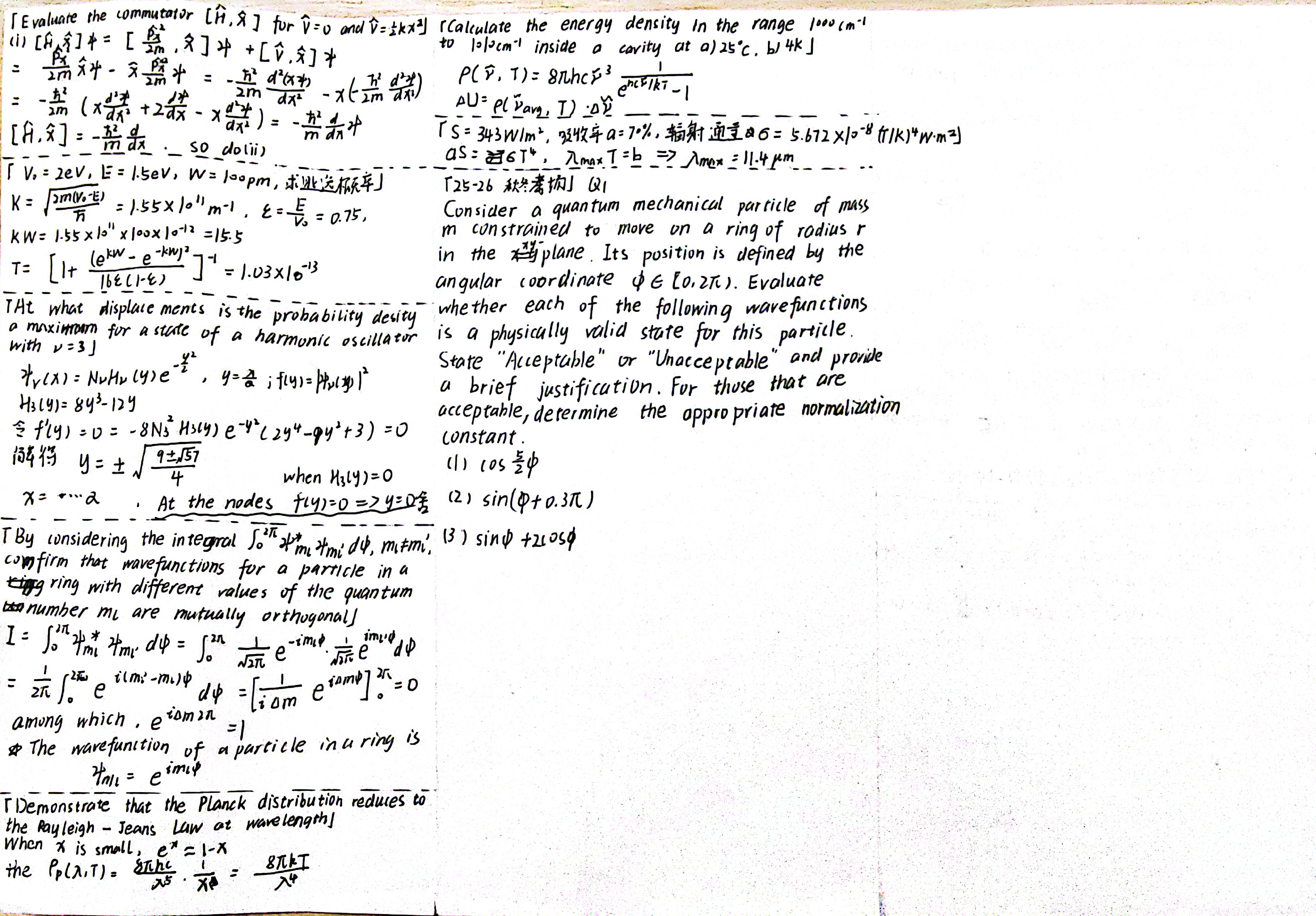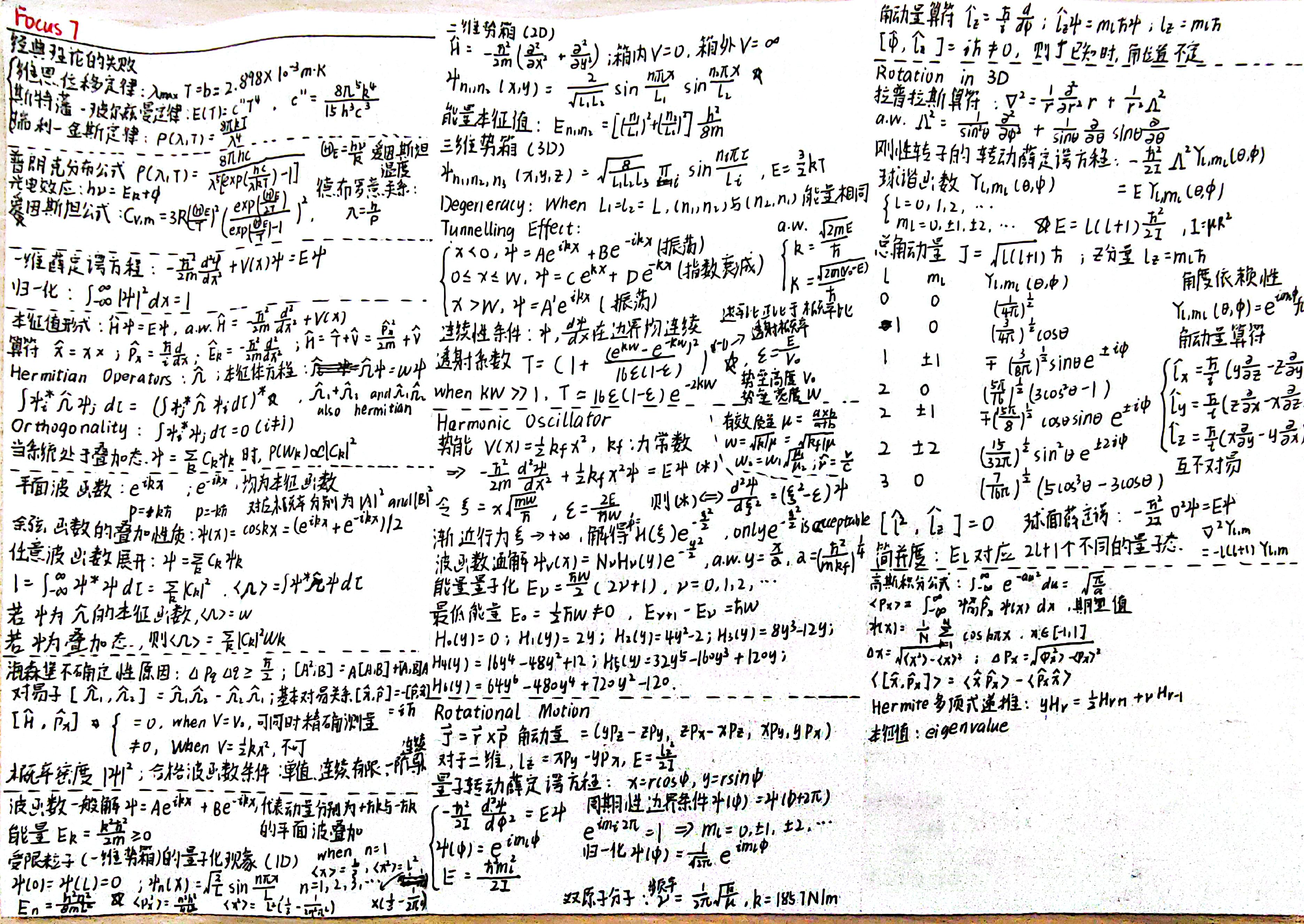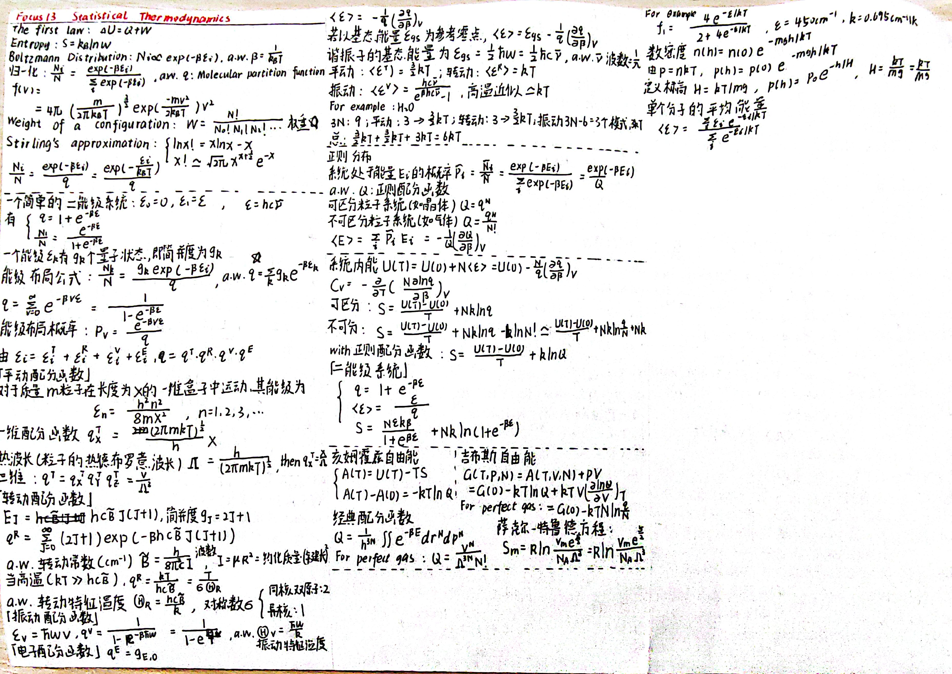 之所以我认为修读压力会小于中文物化,是因为望月老师所教的物理化学是外国的经典体系,给我的感觉是十分面向学科基础,当然没有认为这样修读会很简单的意思。以期末考为例,考试内容为 Focus 7: Quantum theory, Focus 13: Statistical thermodynamics, Focus 14: Molecular interactions,也就是量子理论、统计热力学、分子间作用三个部分,非常的物理而不怎么化学!准备期末给我的感觉就是在修读一门“大学物理 plus”。